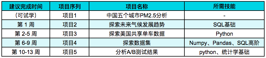 ** 1. 项目1“中国五个城市PM2.5分析” 的学习安排:**